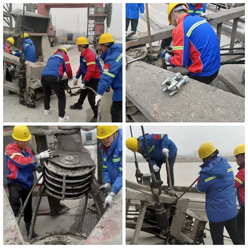 門機(jī)是港口裝卸作業(yè)的“主力軍”,而鋼絲繩作為關(guān)鍵部件,其安全性直接關(guān)聯(lián)作業(yè)效率。一季度,港區(qū)設(shè)備保障團(tuán)隊利用生產(chǎn)間隙,對港區(qū)1#門機(jī)的鋼絲繩開展更換。面對時間緊、任務(wù)重的挑戰(zhàn),團(tuán)隊創(chuàng)新采用“分段式拆裝+滑輪組輔助”工藝,成功將單臺設(shè)備更換時間壓縮20%,并同步完成潤滑保養(yǎng)和隱患排查工作。設(shè)備組組長邱師傅介紹:“我們提前模擬操作流程,細(xì)化每個環(huán)節(jié),抓住門機(jī)使用空檔期,確保‘換繩不停產(chǎn)’。”更換后,門機(jī)故障率下降20%,裝卸效率提升10%,為沖刺生產(chǎn)目標(biāo)提供了堅實保障
