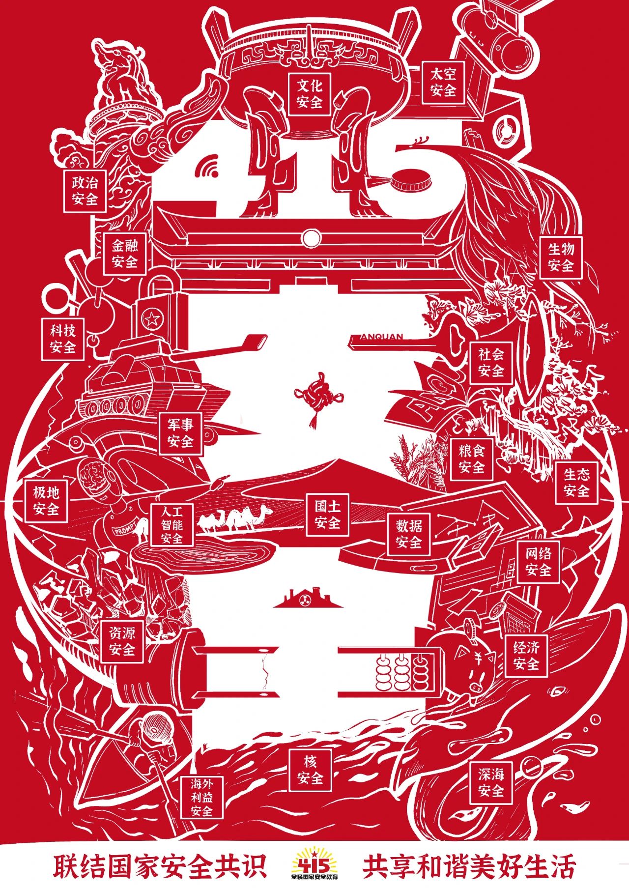 國家安全主要包含了政治安全、軍事安全、國土安全、經濟安全、金融安全、文化安全、社會安全、科技安全、網絡安全、糧食安全、生態安全、資源安全、核安全、海外利益安全、太空安全、深海安全、極地安全、生物安全、人工智能安全、數據安全等20個領域。
