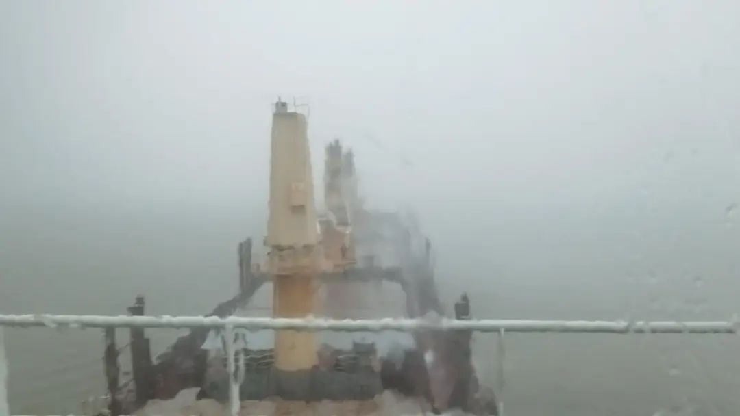 船舶行至燕尾港彎道時,天氣驟然劇變:烏云壓頂,風(fēng)力猛增至九級,暴雨如注,能見度驟降至200米,航道狹窄、險象環(huán)生。引航員立即指令船方加強值守、雙錨備妥落實各項應(yīng)急措施。