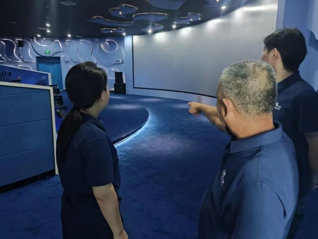 “您好,體驗4D影院前請確認安全帶扣緊,觀影中若有不適可隨時示意。”在“動感海洋影院”入口,老員工成龍江正向新員工朱宇林、劉莉娟演示服務話術與應急要點。老員工結合升級后板塊特色,從場館動線引導、展品講解到4D設備、VR區安全操作,開展“一對一”帶教,傾囊相授服務經驗。“跟著成叔學習,我不僅記熟了知識點,還會按游客年齡調整講解方式,現在應對提問不慌了。”新員工劉莉娟自信說道。