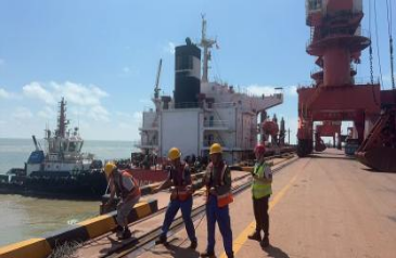 “緊急!3號泊位船舶離港時間提前2小時,臺風預計提前登陸!”調(diào)度員迅速召集裝卸班長、車輛及設備管理員緊急磋商。人力與機械重新優(yōu)化部署:增派一輛裝載機,加調(diào)五輛運輸車,每個船艙增配一名清倉工。時間被重新切割,“搶出這兩小時,就能確保船舶安全離港!”——這是一場與風暴賽跑的攻堅。