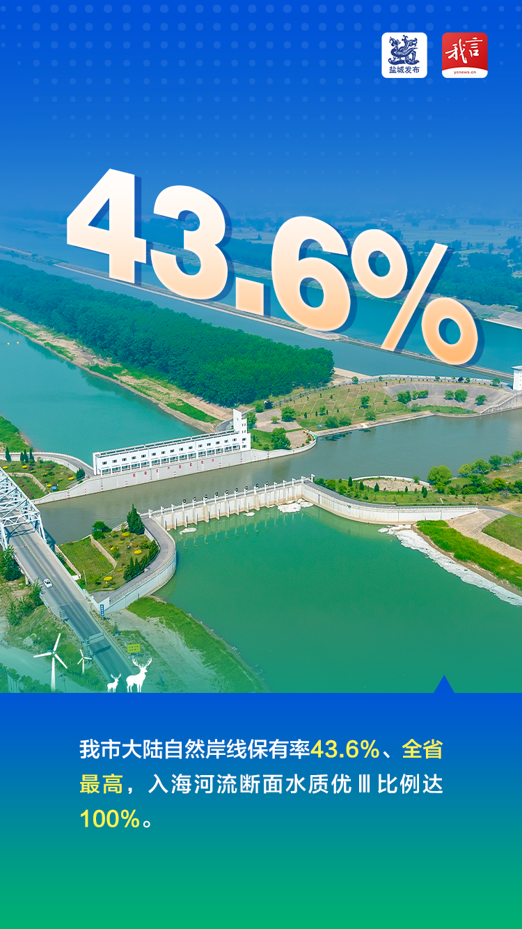 大陸自然岸線保有率43.6%、全省最高,入海河流斷面水質優Ⅲ比例達100%……