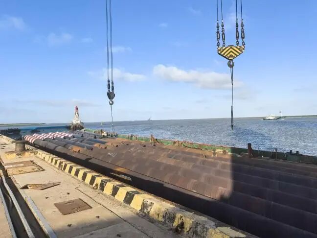 面對密集到港船舶和緊張船期,港區(qū)科學(xué)統(tǒng)籌作業(yè)資源,優(yōu)化物流組織,通過整合路線、強(qiáng)化聯(lián)運(yùn)、推廣直取直裝等方式,打通銜接堵點(diǎn),實(shí)現(xiàn)“車船直裝、貨不落地”的高效轉(zhuǎn)運(yùn)模式。近日,光伏管樁項(xiàng)目第8船作業(yè)圓滿完成,展示了港區(qū)高效協(xié)同、精準(zhǔn)作業(yè)的硬核實(shí)力,為后續(xù)新業(yè)務(wù)開展樹立了標(biāo)桿。