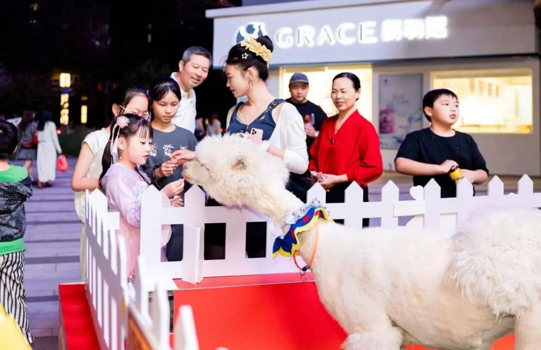 本次活動中,溫順的羊駝與憨厚的奶牛再度亮相寶龍、射陽體驗館,成為吸引家庭客流的“流量密碼”。孩子們在家長的陪伴下,與這些可愛的動物朋友親密接觸、拍照打卡,現場歡聲笑語不斷。熟悉的動物互動環節不僅成功營造了歡樂祥和的節日氛圍,更顯著增強了線下活動的吸引力與參與感,讓購物體驗超越了簡單的買賣,升級為一場溫馨的親子嘉年華。