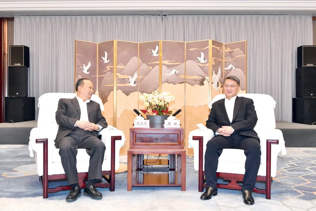 4月16日下午,市委書記周斌在鹽會見通威集團董事局主席劉漢元一行。