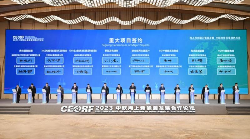 論壇發布了《2023中歐海上新能源發展合作論壇鹽城宣言》《公開征集海上光伏、海上能源島與新能源高比例應用試點示范技術方案》《中歐漂浮式海上風電關鍵技術與產業鏈對比分析與合作潛力研究報告》等,簽約了25個重大項目,總金額294.8億元,為進一步推動海上新能源技術創新與產業升級、深化中歐務實合作注入新動能。
