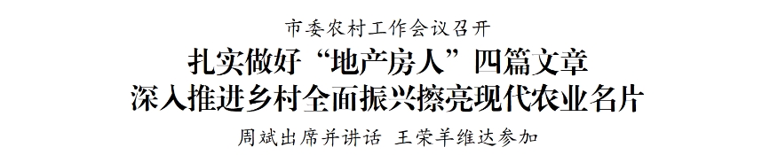 周斌指出,去年全市上下堅持把“三農”工作擺在全局工作的重中之重,穩產保供彰顯擔當,產業發展加快起勢,強村富民闖出新路,農業農村現代化邁出堅實步伐。當前,高水平建設農業強市已經從起筆謀劃進入到加快實施的階段,“三農”工作肩負的使命更加重大,必須切實增強做好“三農”工作責任感使命感,準確把握“三農”工作定位、現階段主要任務、鄉村振興實現路徑,堅定信心、乘勢而上,不斷提升鄉村產業發展、鄉村建設和鄉村治理水平,加快建設宜居宜業和美鄉村。