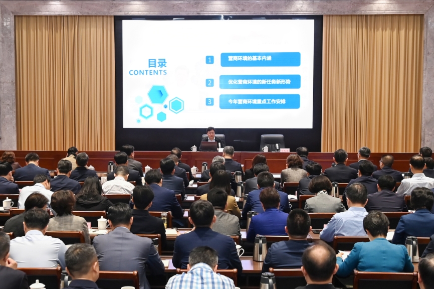 張明康在主持會(huì)議時(shí)指出,各地各部門要站位全局、提高認(rèn)識(shí),深入學(xué)習(xí)領(lǐng)會(huì)、認(rèn)真貫徹落實(shí)會(huì)議精神,推出更多針對(duì)性強(qiáng)、含金量更高的政策措施,營(yíng)造更加濃厚的尊商重商親商安商氛圍,全力打造營(yíng)商環(huán)境“升級(jí)版”。要對(duì)標(biāo)一流、深化改革,以市場(chǎng)化增活力、法治化穩(wěn)預(yù)期、國(guó)際化添動(dòng)力,對(duì)照任務(wù)清單抓好落實(shí),讓企業(yè)和群眾感受到更多新變化新氣象。要凝聚合力、久久為功,堅(jiān)持齊抓共管,加強(qiáng)協(xié)同聯(lián)動(dòng),強(qiáng)化宣傳引導(dǎo),共同營(yíng)造優(yōu)化營(yíng)商環(huán)境的良好氛圍。