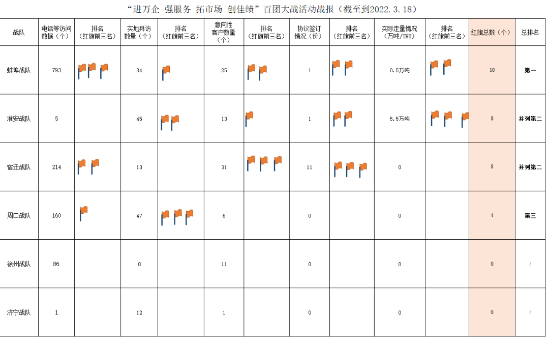 2.濱海港區(qū)戰(zhàn)隊:在拜訪活動中,濱海港區(qū)戰(zhàn)隊不僅僅局限于規(guī)上企業(yè)名單,拜訪的同時也不忘挖掘周邊有可能的企業(yè)。通過這種做法也是成功發(fā)掘一家化肥貿(mào)易企業(yè),吞吐量50萬噸,正在商討合同條款,預計下周簽訂合同并開始走量。