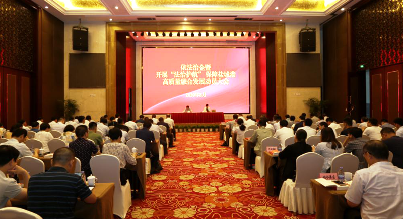 8月16日上午,集團召開依法治企暨開展“法治護航”保障鹽城港高質量融合發展動員大會,進一步統一思想,凝聚共識,推進依法治企。會議邀請了第十一屆、十二屆全國人大代表,省律師協會副會長,江蘇瑞信律師事務所一級律師劉玲女士作了《民法典》專題宣講。集團黨委書記、董事長、總經理周正雄主持會議并講話。