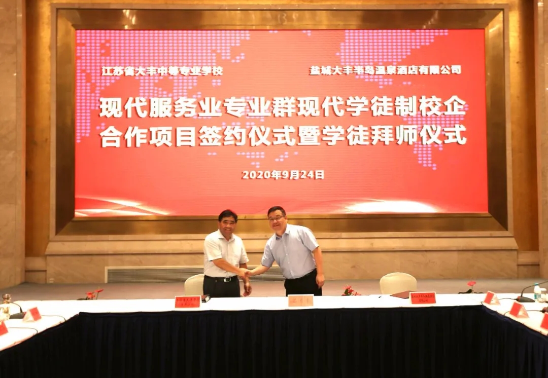 據(jù)悉,大豐中等專業(yè)學(xué)校和大豐港集團旗下半島溫泉酒店簽訂協(xié)議,雙方將共同探索建立校企“聯(lián)合招生、聯(lián)合培養(yǎng)、定向就業(yè)”的人才培養(yǎng)長效機制,為創(chuàng)新人才培養(yǎng)方式提供了一個嶄新平臺。通過合作,學(xué)校和企業(yè)進行優(yōu)勢互補,實現(xiàn)資源共享。活動中,學(xué)校、酒店、家長、學(xué)生四方代表簽訂了現(xiàn)代學(xué)徒制工學(xué)交替跟崗實習(xí)協(xié)議,并舉行首批學(xué)徒制拜師儀式,23名學(xué)生順利拜師跟崗。