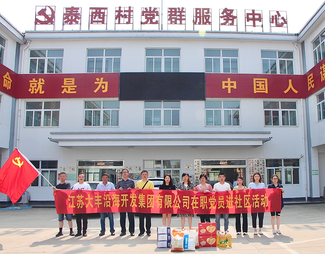 近日,大豐港區沿海集團黨總支組織各子公司在職黨員開展走進社區活動,對泰西村的老黨員、困難群眾開展走訪慰問,為他們送去黨的關懷和溫暖。