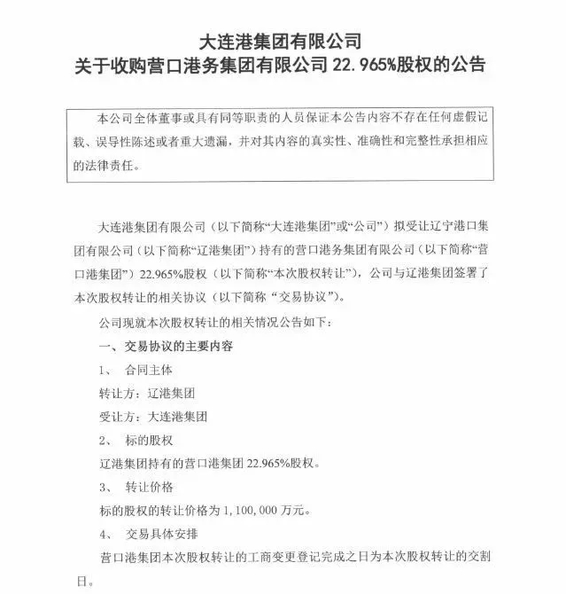 而一直到2019年5月,大連港才陸續拉開了整合大幕。發布了《關于收購營口港集團22.956%股權的公告》。