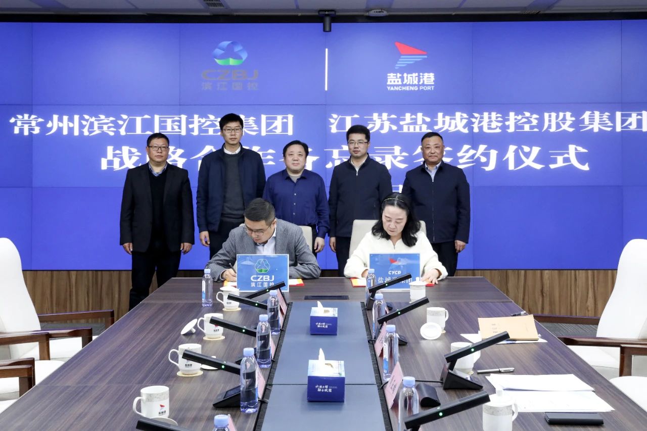 會(huì)后,鹽城港集團(tuán)與濱江國(guó)控集團(tuán)簽訂戰(zhàn)略合作備忘錄。袁欣代表集團(tuán)簽約。
