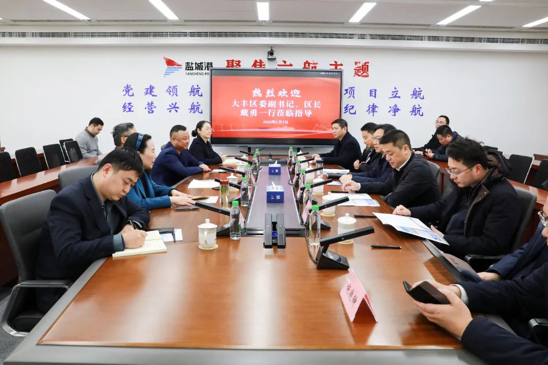 2月5日,大豐區(qū)委副書記、區(qū)長戴勇率隊(duì)拜訪集團(tuán),雙方就深化合作進(jìn)行交流洽談,集團(tuán)黨委副書記、董事、總經(jīng)理陸帥接待戴勇一行。大豐區(qū)委常委、大豐港經(jīng)濟(jì)開發(fā)區(qū)黨工委書記黃同城,集團(tuán)黨委副書記、紀(jì)委書記周旭東,集團(tuán)副總經(jīng)理袁欣等參加。