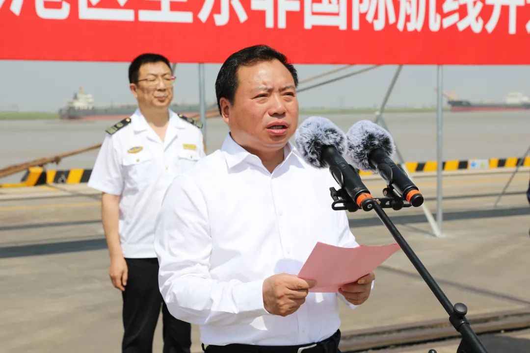 王連春代表市委、市政府,對活動的成功舉辦表示祝賀。他指出,灌河口5萬噸級航道通航暨東非國際航線的開通,將大幅提高灌河口大型船舶的通航能力和港口的貨物吞吐量,對實現(xiàn)鹽城水運“四高三美”和物流企業(yè)降本增效,推動黃海新區(qū)等重點片區(qū)有效融入長三角一體化、淮河生態(tài)經(jīng)濟帶等區(qū)域協(xié)同發(fā)展大局,起到重要的戰(zhàn)略支撐作用。鹽城港集團要優(yōu)化港口航道規(guī)劃布局,推動物流通道強鏈補鏈,加速構(gòu)建高效便捷順暢的綠色物流體系;交通運輸、海事等部門要深化海鐵等多式聯(lián)運發(fā)展和運輸結(jié)構(gòu)調(diào)整,補強加密水運航線網(wǎng)絡,提升港航綜合通達能力;響水縣要強化港產(chǎn)城聯(lián)動發(fā)展,把依河傍海的獨特資源優(yōu)勢轉(zhuǎn)化為產(chǎn)業(yè)優(yōu)勢、發(fā)展優(yōu)勢,不斷開創(chuàng)沿海經(jīng)濟發(fā)展新局面;市相關(guān)部門要樹立支持港口發(fā)展就是支持鹽城向海發(fā)展的意識,積極主動做好服務保障工作,為全市經(jīng)濟高質(zhì)量發(fā)展大局作出新的更大的貢獻。