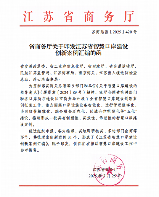 近日,江蘇省商務廳印發《江蘇省智慧口岸建設創新案例匯編》,鹽城港集團建設的“一體化海河聯運集裝箱生產管理系統”成功入選,成為全省31個智慧口岸建設創新案例之一。該系統的運用,實現了港口生產全流程的自動化與協同化,顯著提升了作業效率和服務水平,為全省智慧口岸建設提供了可復制、可推廣的先進經驗。